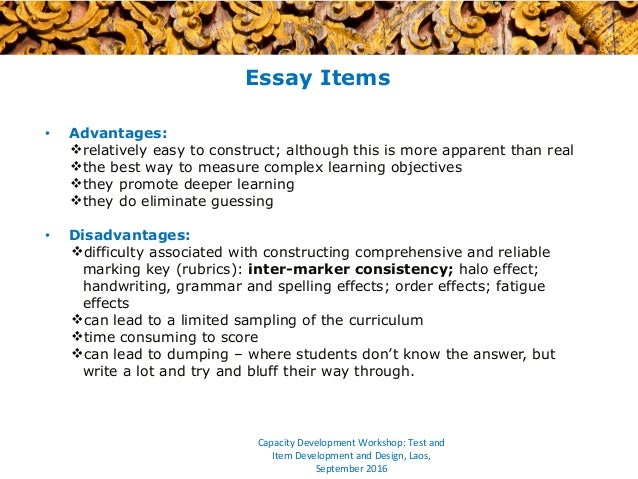 - Extended response essay test items